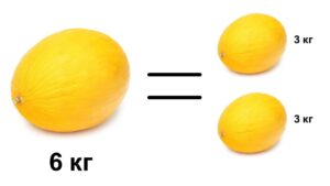 Возьмём пример из жизни: одна крупная дыня весит 6 кг, а две поменьше весят каждая по 3 кг. Следовательно, между одной большой дыней и двумя маленькими